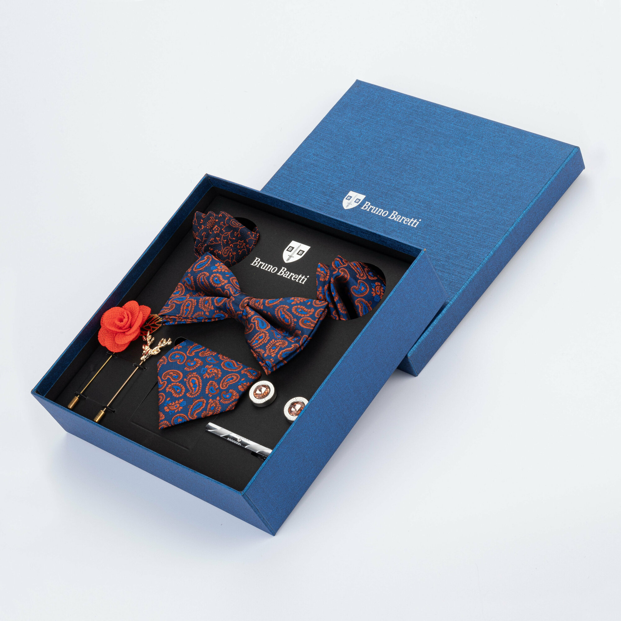 | Дополнительная информация | лазерная гравировка бренда Bruno Baretti на запонках, подарочная коробка дополнительно упаковывается в коробку из микрогофрокартона для защиты при транспортировке товара |