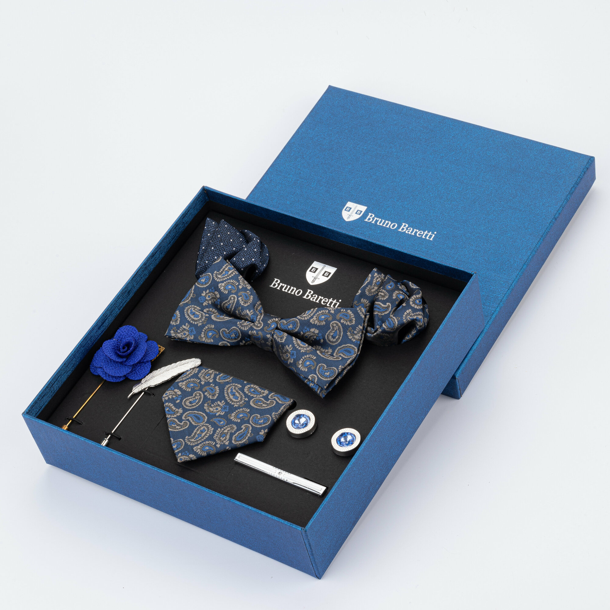 | Дополнительная информация | лазерная гравировка бренда Bruno Baretti на запонках, подарочная коробка дополнительно упаковывается в коробку из микрогофрокартона для защиты при транспортировке товара |