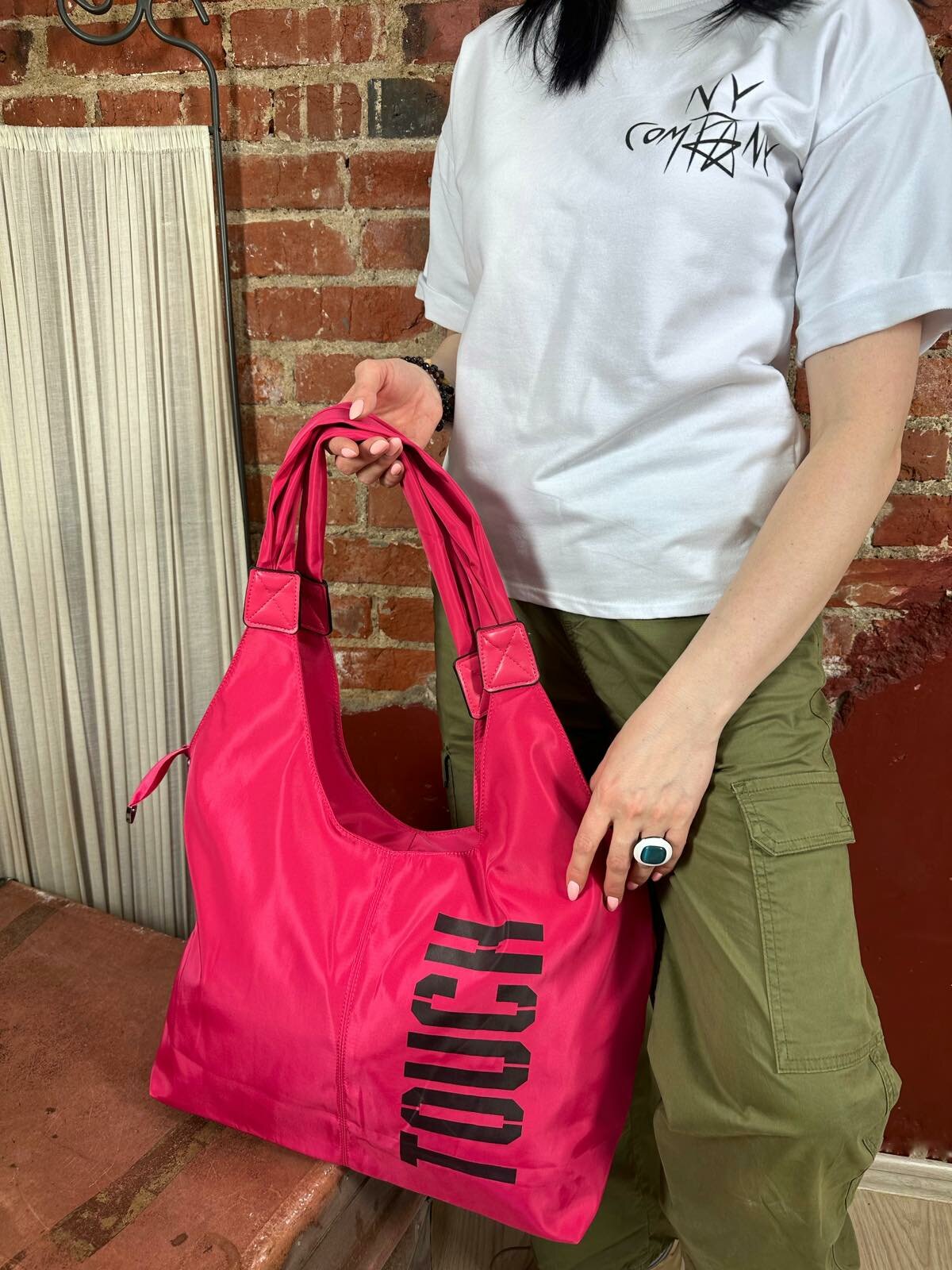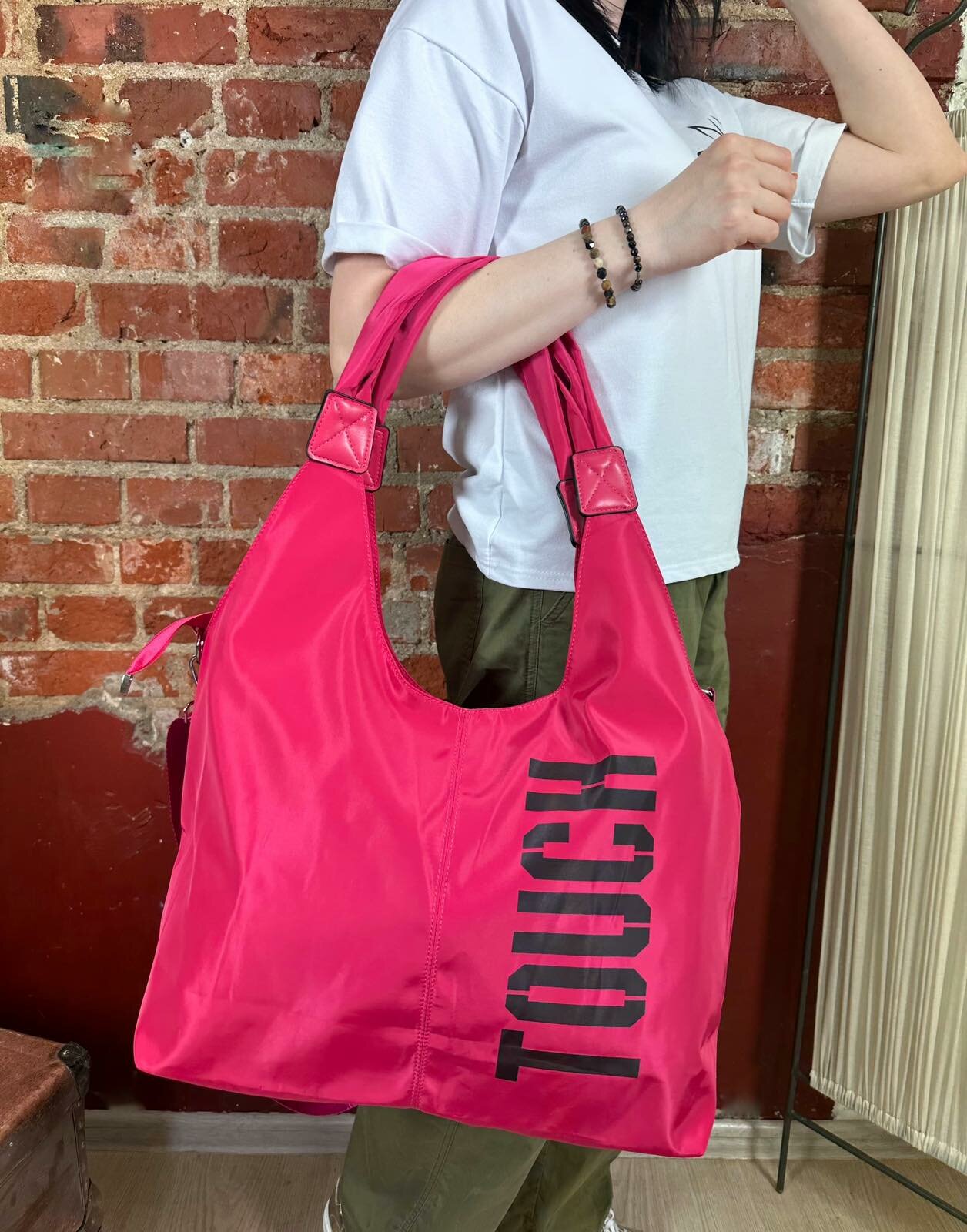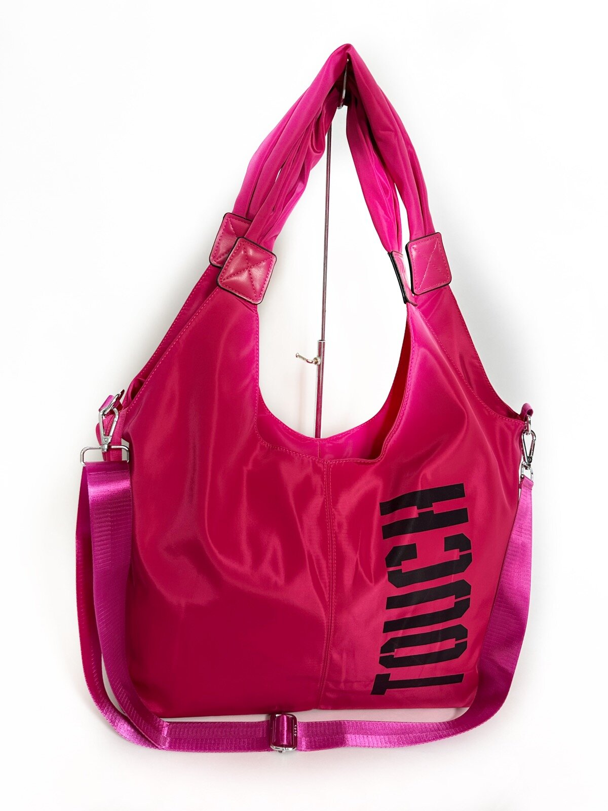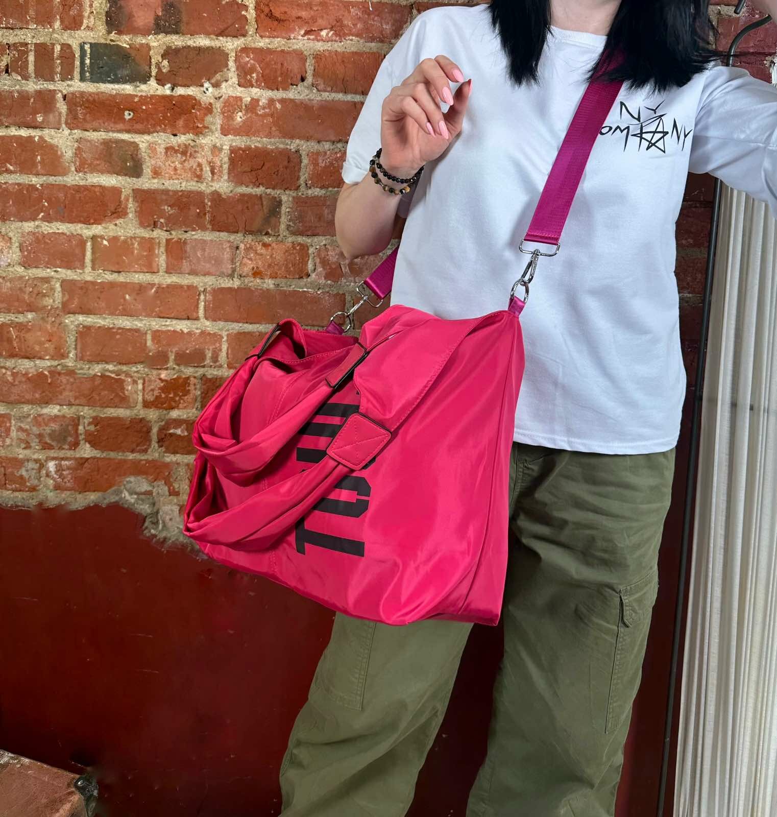 Сумка дорожная TOUCH плотная две ручки, широкий длинный ремень фуксия