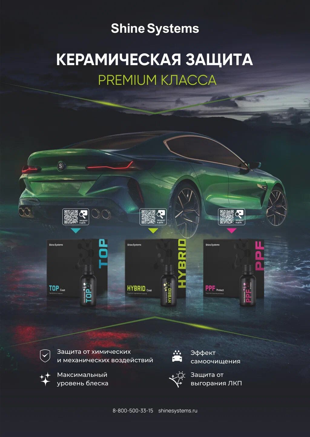 TOP Coat - гидрофобное керамическое покрытие для кузова Shine Systems, 50 мл интересное:
