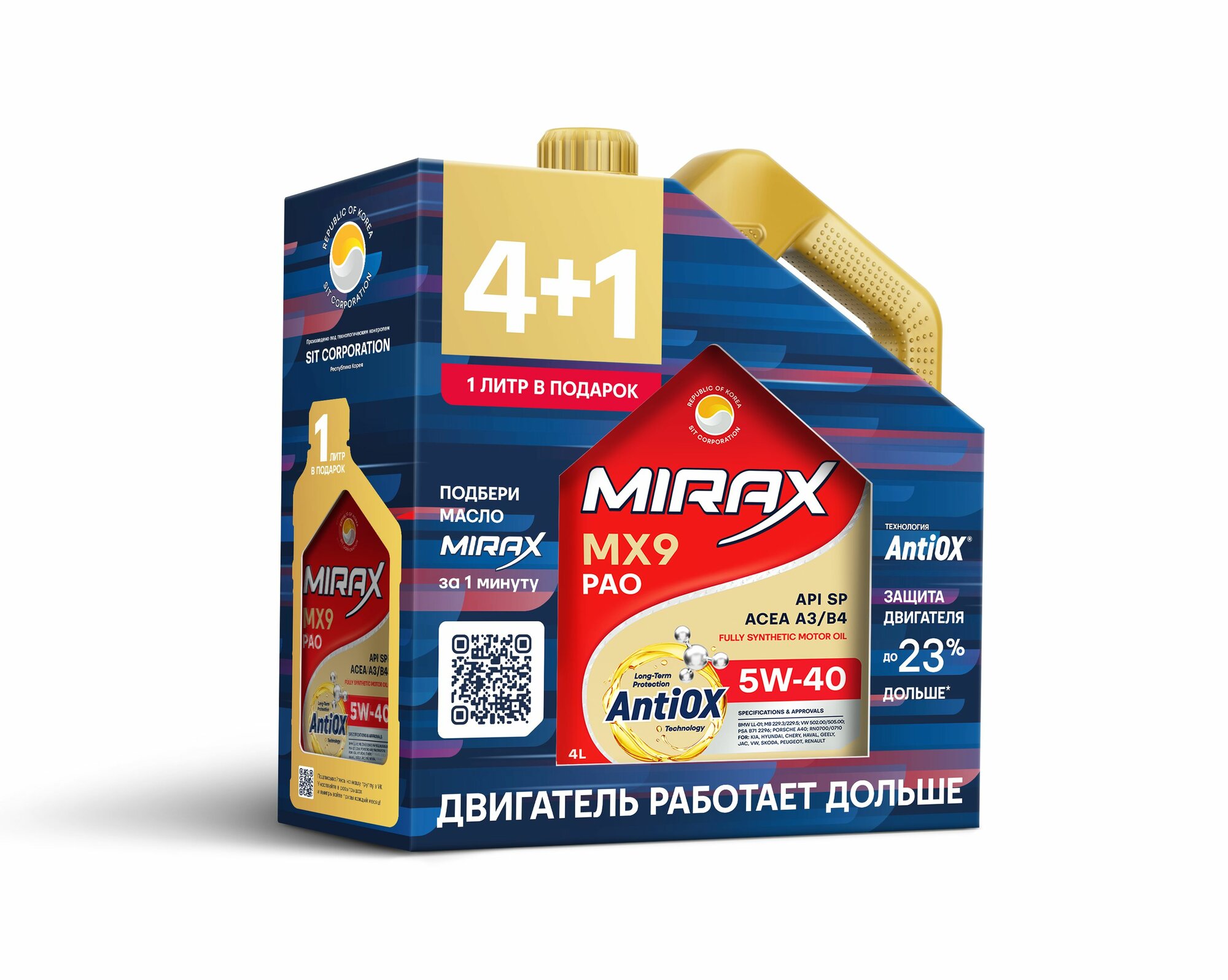 Купить Акция 4+1 Моторное масло MIRAX MX9 SAE 5W-40, API SP, ACEA A3/B4 Синтетическое 5 л