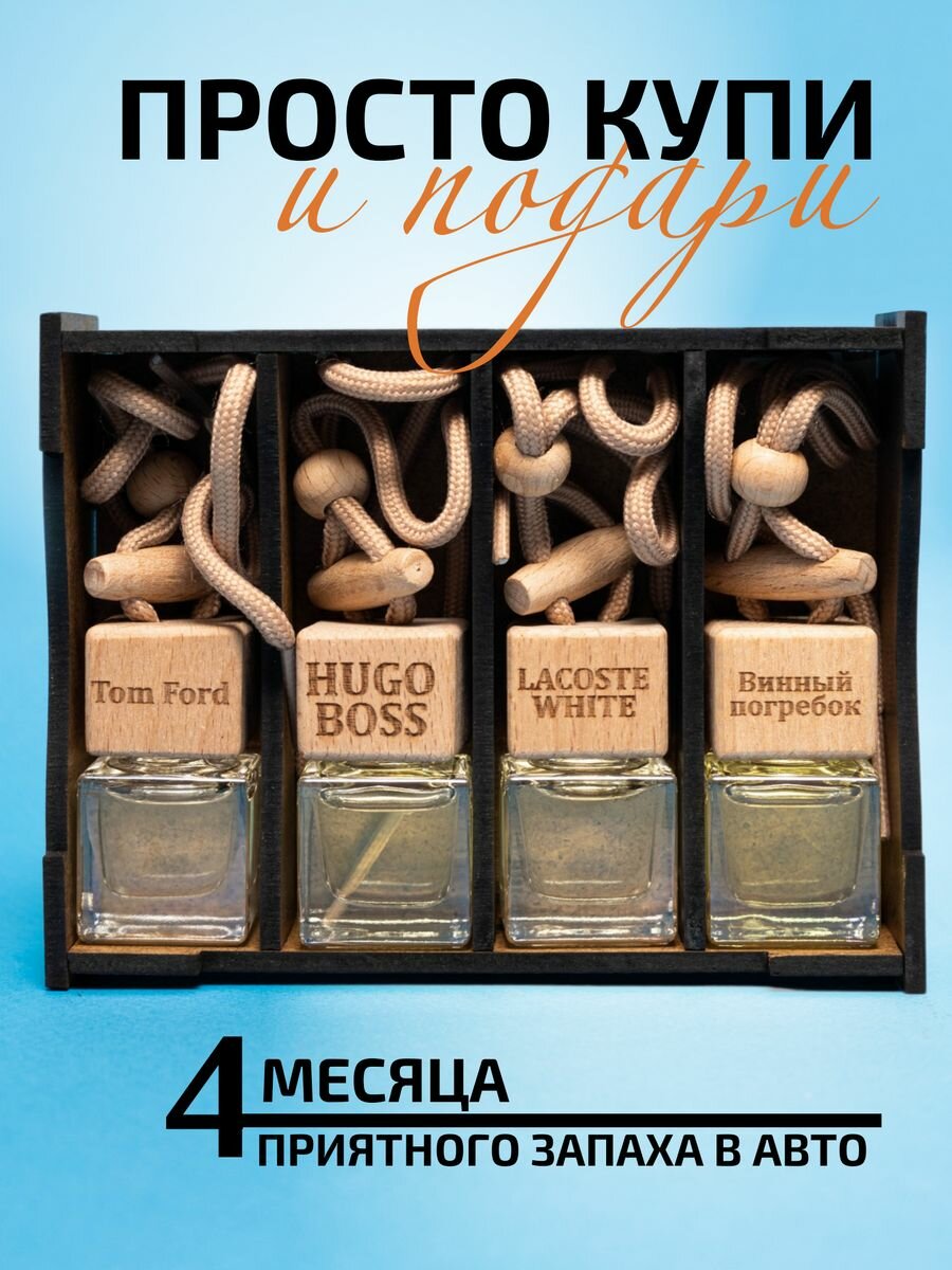 Купить Подарочный набор мужчине, ароматизатор в машину Tom Ford, Hugo Boss, Lacoste White, Винный погребок