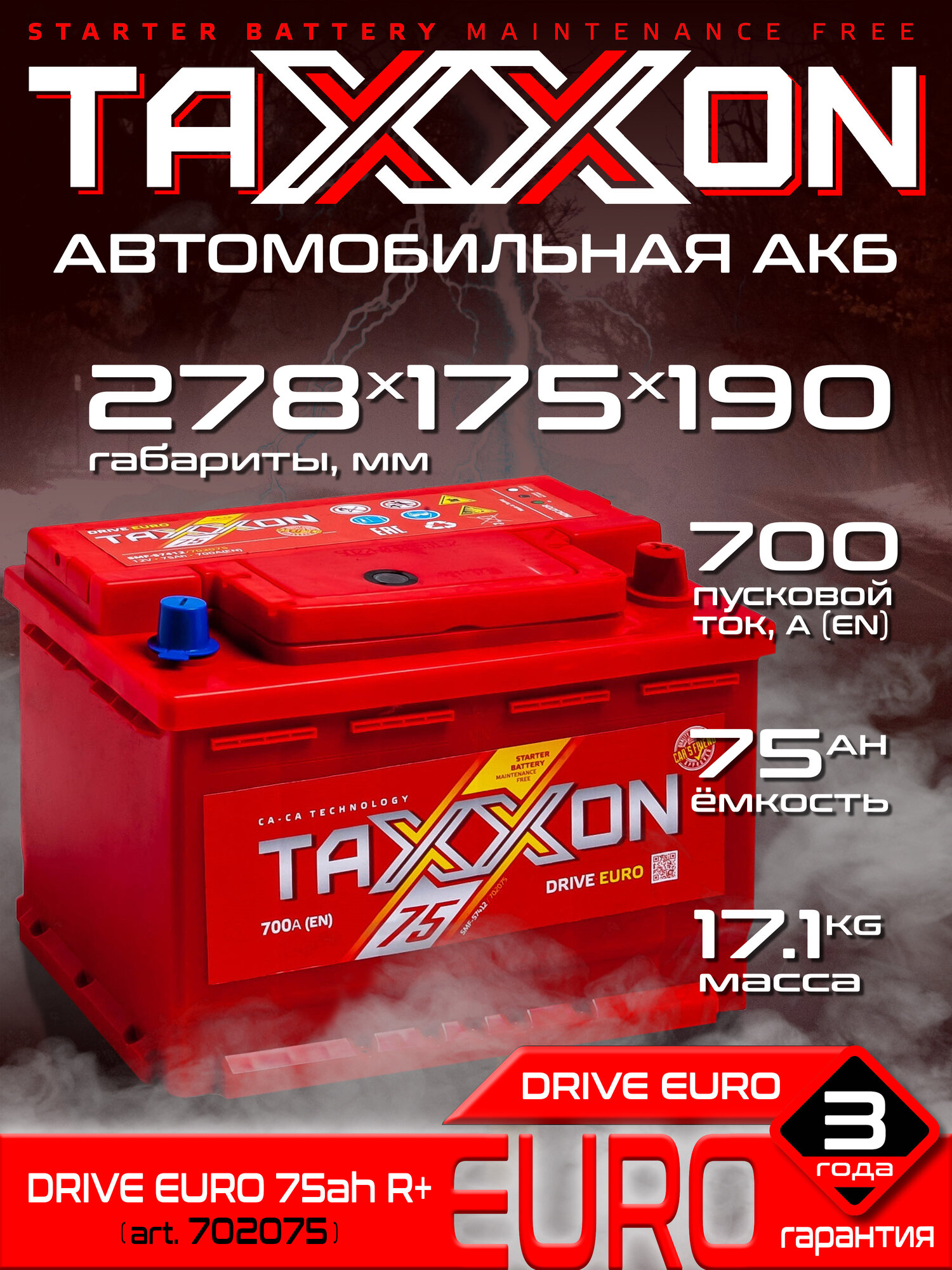 Аккумулятор автомобильный TAXXON DRIVE EURO 75R 700 А обр. пол. 75 Ач (702075)