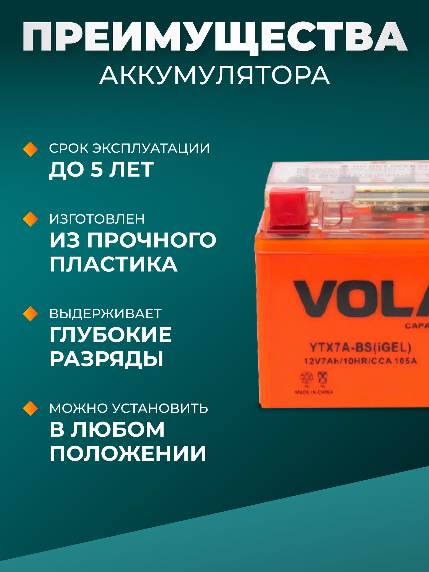 | Маркировка мотоаккумулятора | YTX7A-BS(iGEL)Volat |
