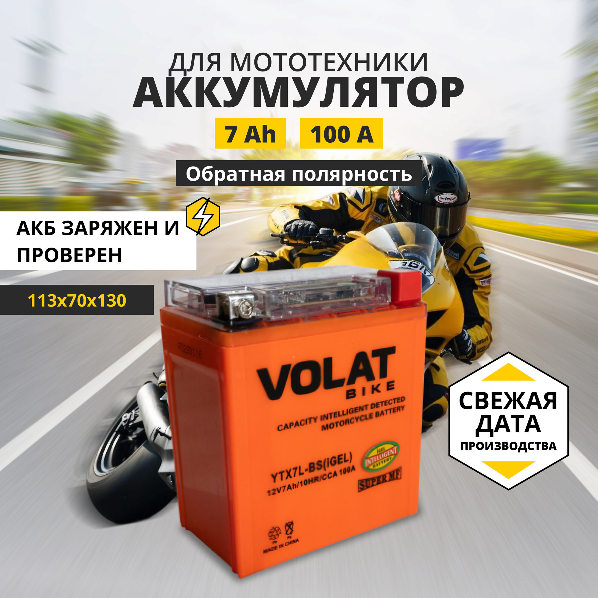 СохранитьАккумулятор для мотоцикла 12v Volat YTX7L-BS(iGEL) обратная полярность 7 Ah 100 A гелевый, акб на скутер, мопед, квадроцикл, мотоцикл интересное: