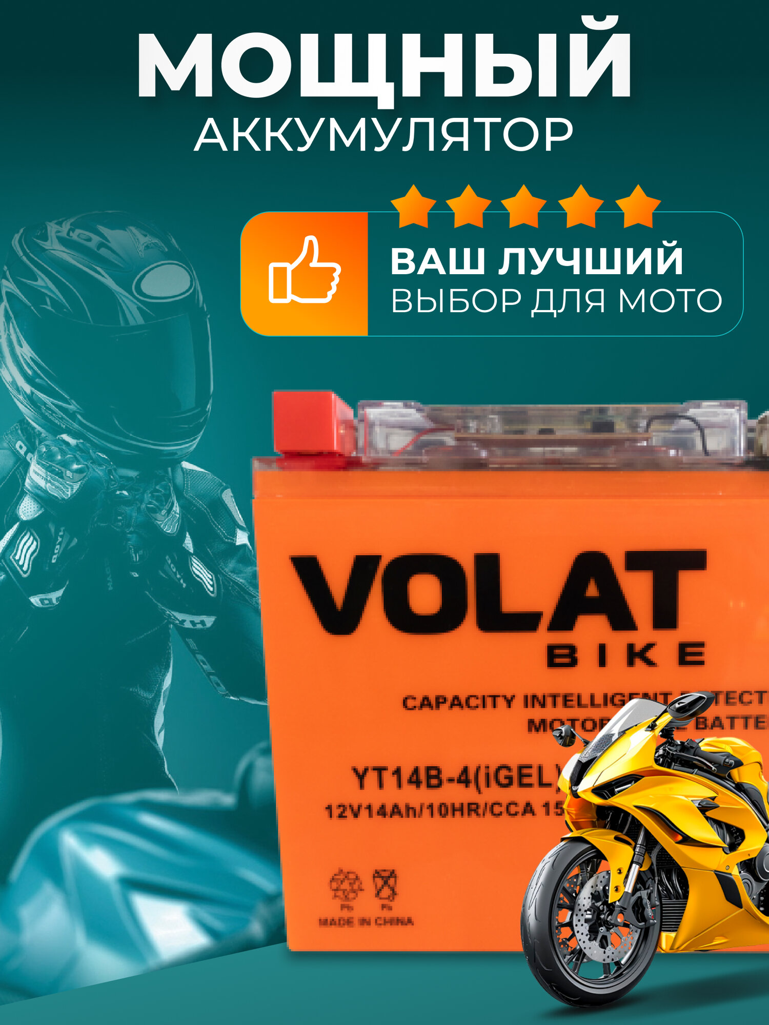 Ниже Вы можете прочитать отзывы на Аккумулятор для мотоцикла 12v Volat YT14B-4(iGEL) прямая полярность 14 Ah 155 A гелевый, акб на скутер, мопед, квадроцикл, мотоцикл, ознакомится с подробными характеристиками, посмотреть интересные обзоры и фотографии на Аккумулятор для мотоцикла 12v Volat YT14B-4(iGEL) прямая полярность 14 Ah 155 A гелевый, акб на скутер, мопед, квадроцикл, мотоцикл.