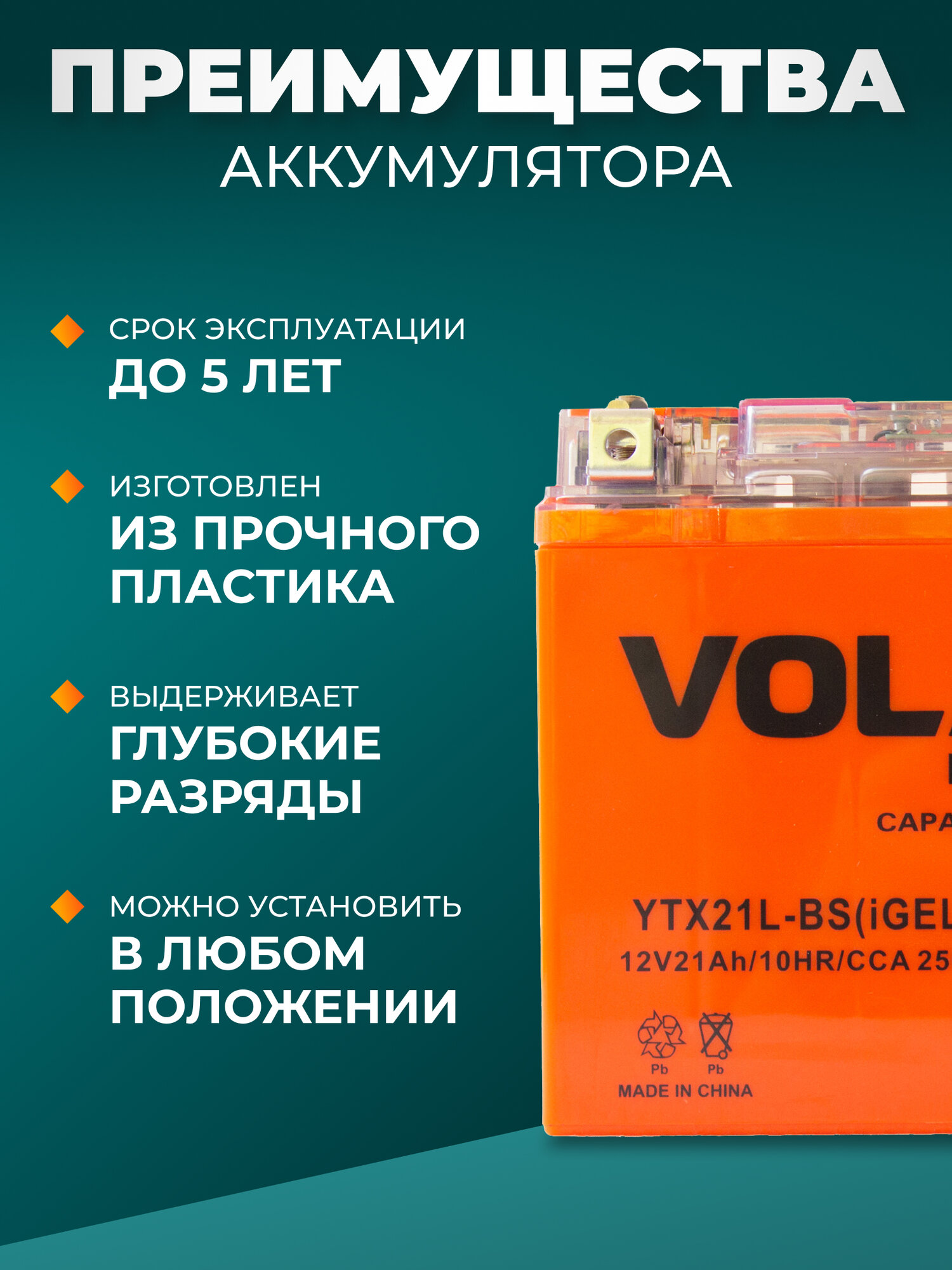 | Маркировка мотоаккумулятора | YTX7A-BS(iGEL)Volat |