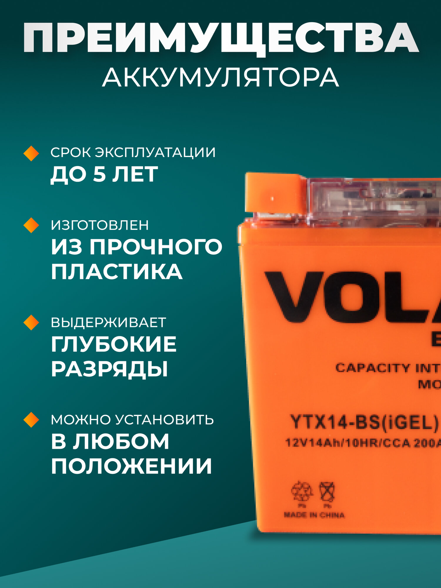 | Маркировка мотоаккумулятора | YTX7A-BS(iGEL)Volat |