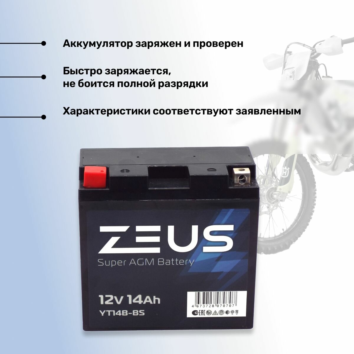 Аккумулятор стартерный гелевый для мотоцикла/квадроцикла/скутера ZEUS SUPER AGM 14 Ач п.п. (YT14B-BS)