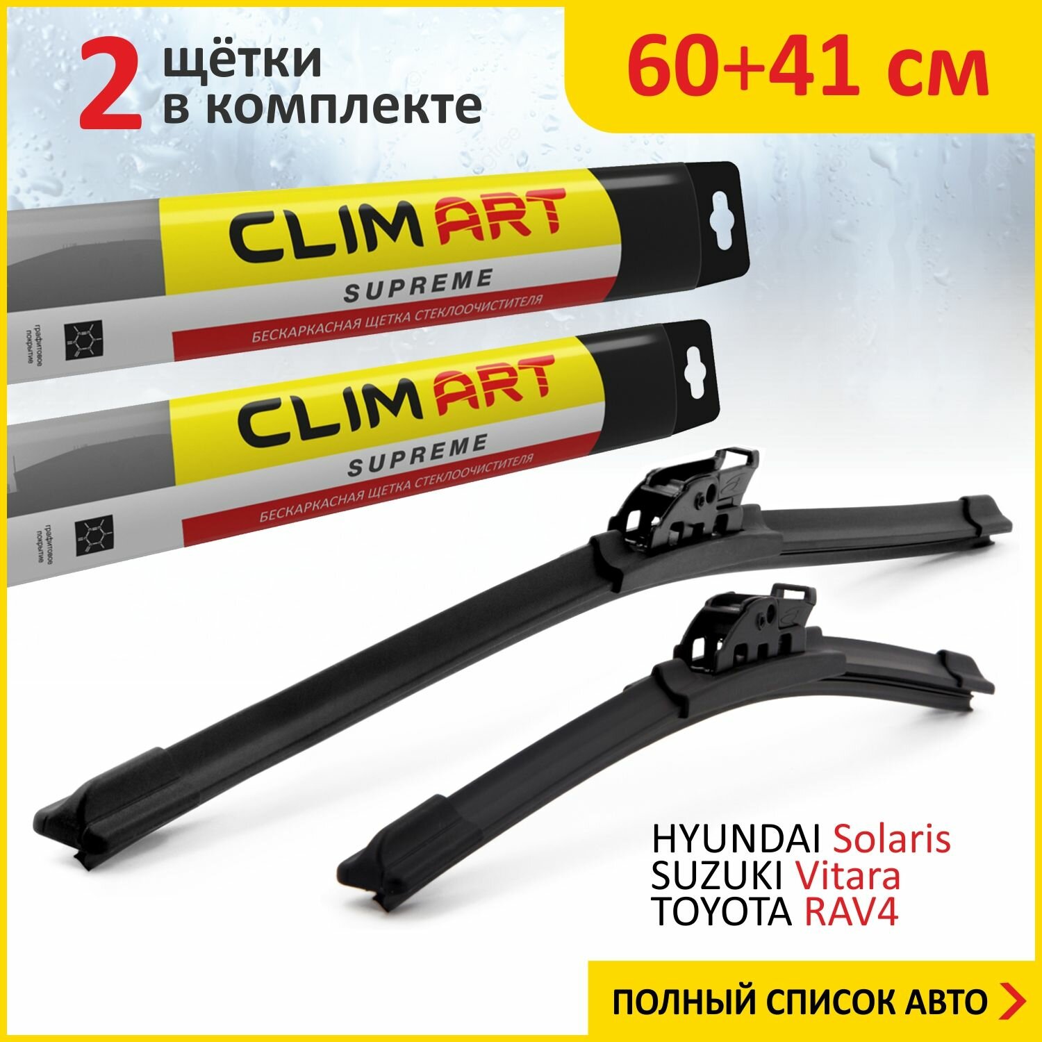 Купить 2 Щетки стеклоочистителя в комплекте (60+41 см), Дворники для автомобиля Clim Art для HYUNDAI Solaris(17-)/SUZUKI Vitara(15-)/TOYOTA RAV4(05-12)