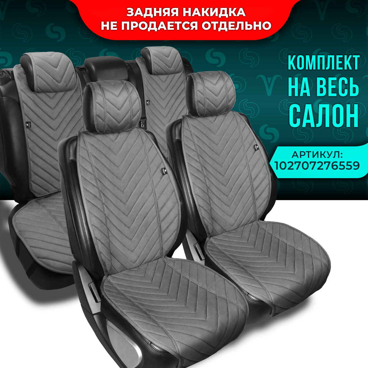 Полный комплект накидки из алькантары на сиденья автомобиля. Модель L SV PK. Серый