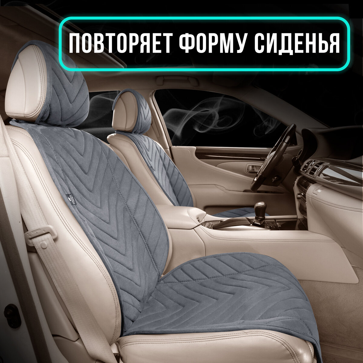 СохранитьПара накидок из алькантары на переднее сиденье автомобиля. Модель L SV. Серый интересное: