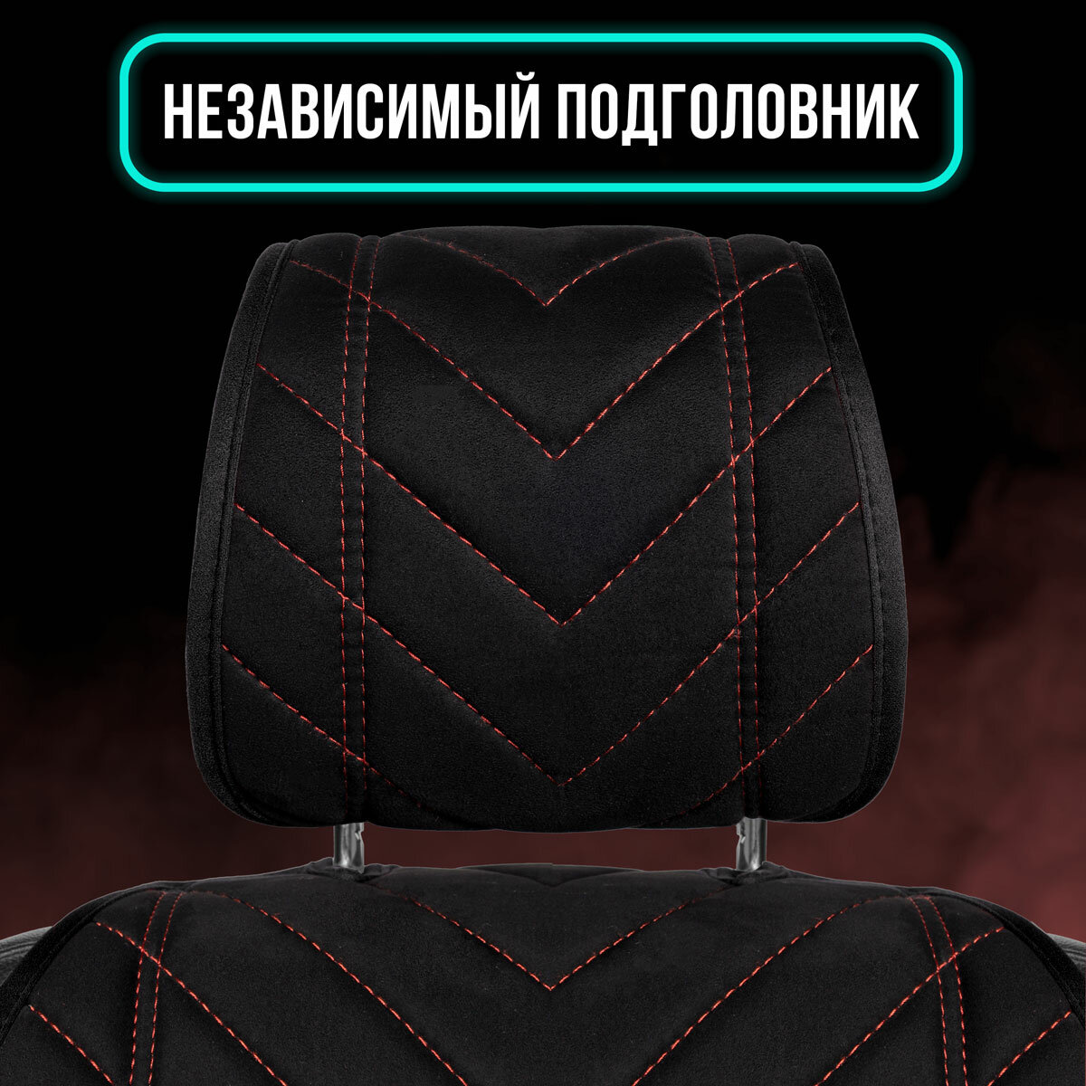 СохранитьПара накидок из алькантары на переднее сиденье автомобиля. Модель L SV. Черный/красная строчка интересное: