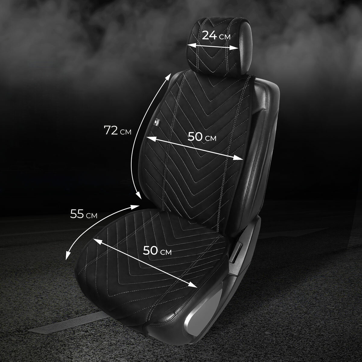 Пара накидок из алькантары на переднее сиденье автомобиля. Модель L SV. Черный/белая строчка