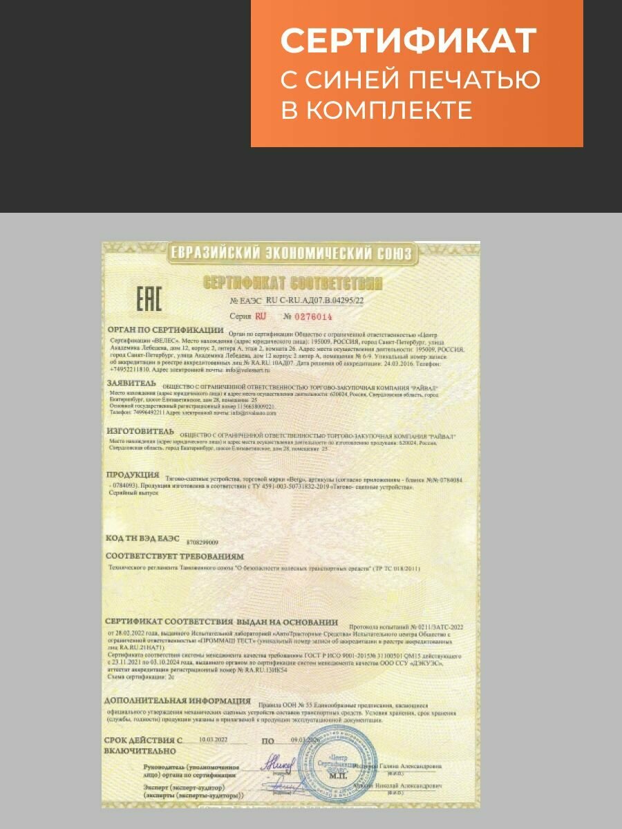 | Подробная комплектация | - фаркоп; - крепеж; - паспорт с инструкцией; - сертификат. |