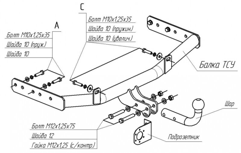 Устройство прицепное ВАЗ 1117/1118/2190 "BOSAL" (съемный шар)