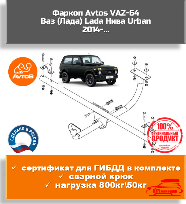 Фаркоп AvtoS VAZ-64 для Ваз (Лада) Lada Нива Urban 2014-. (паспорт и сертификат в комплекте) интересное: