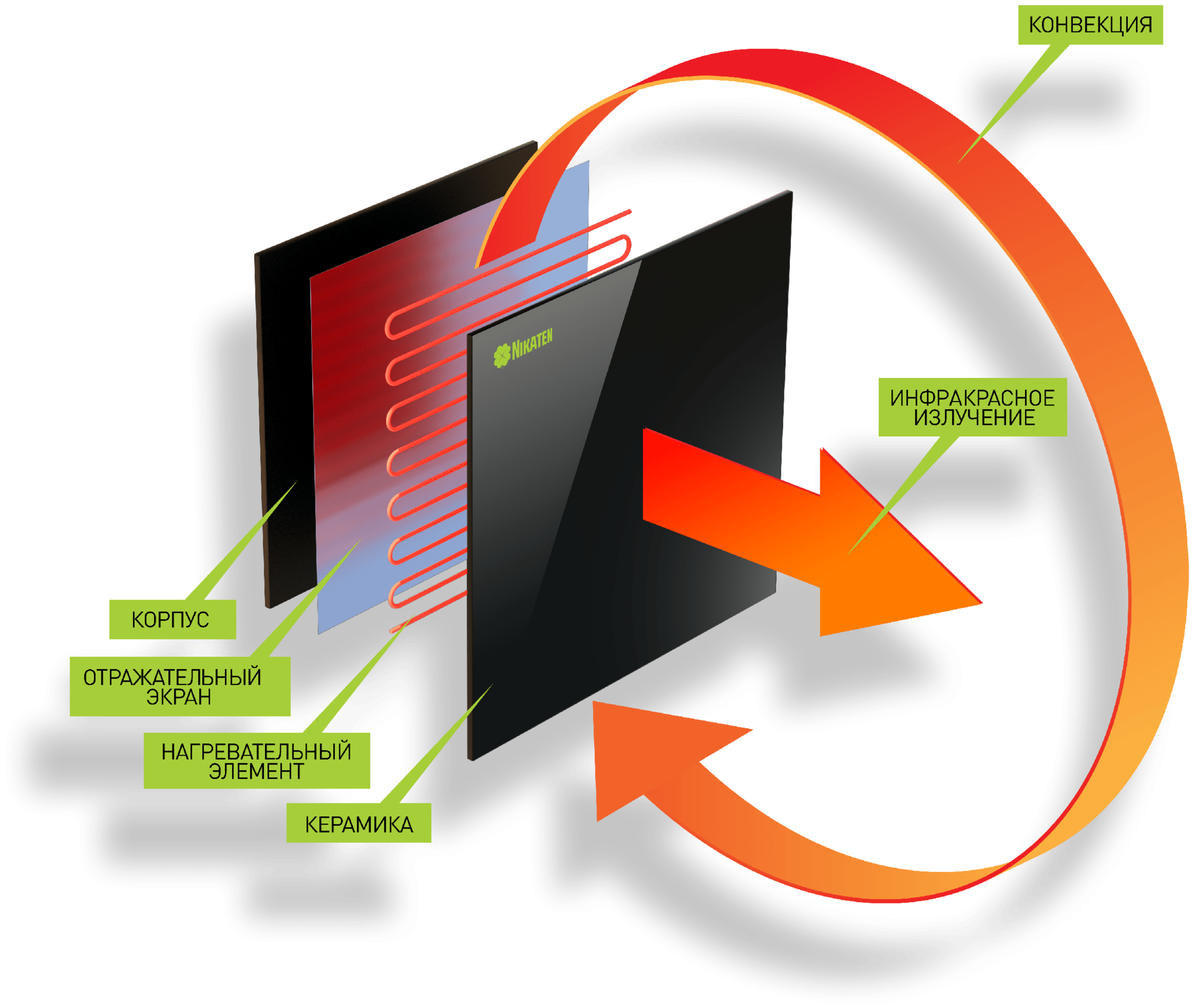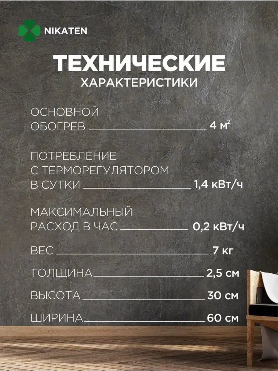 Обогреватель для дома Никатэн 150Вт инфракрасный, керамический, настенный