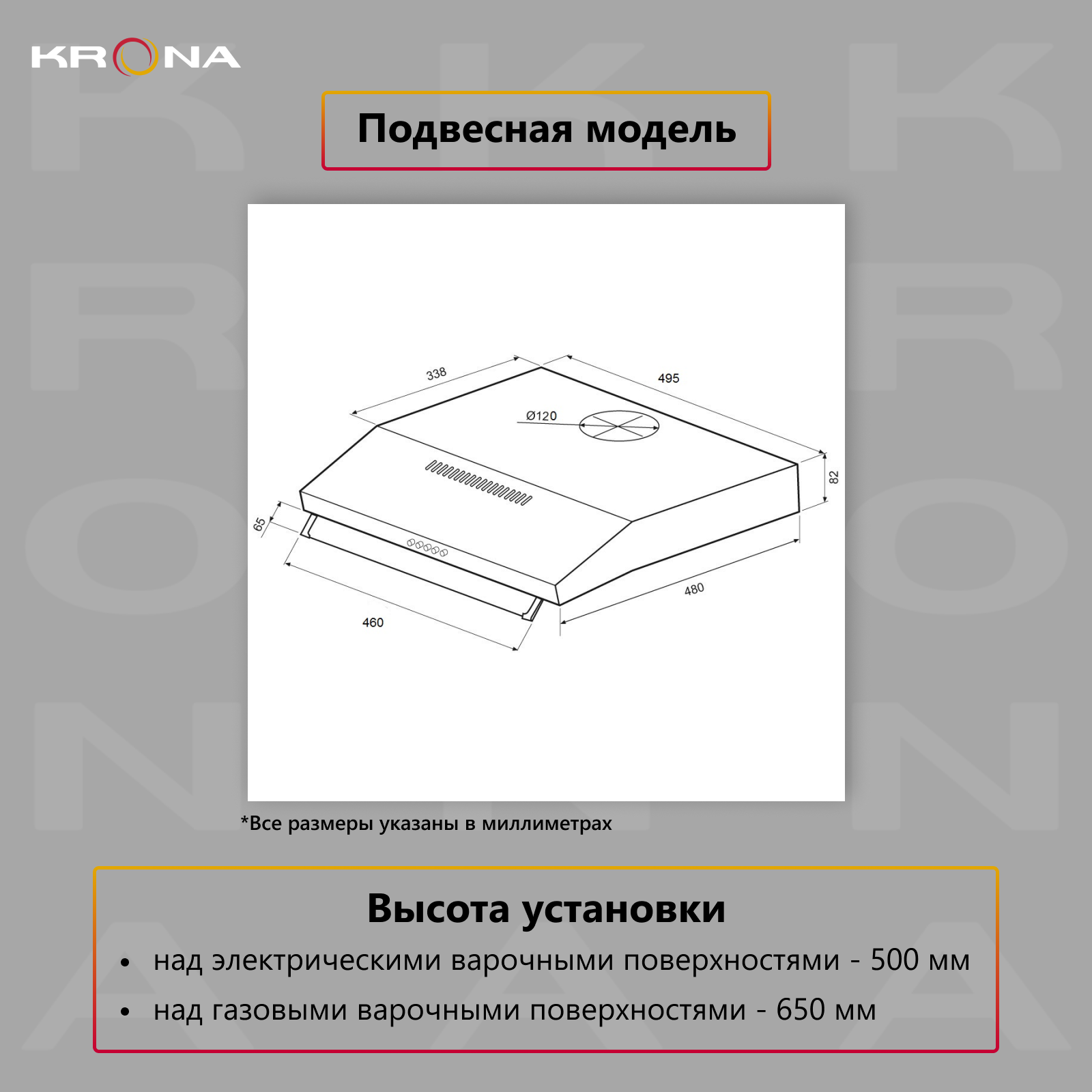Купить Вытяжка кухонная KRONA OSTEN 500 black PB