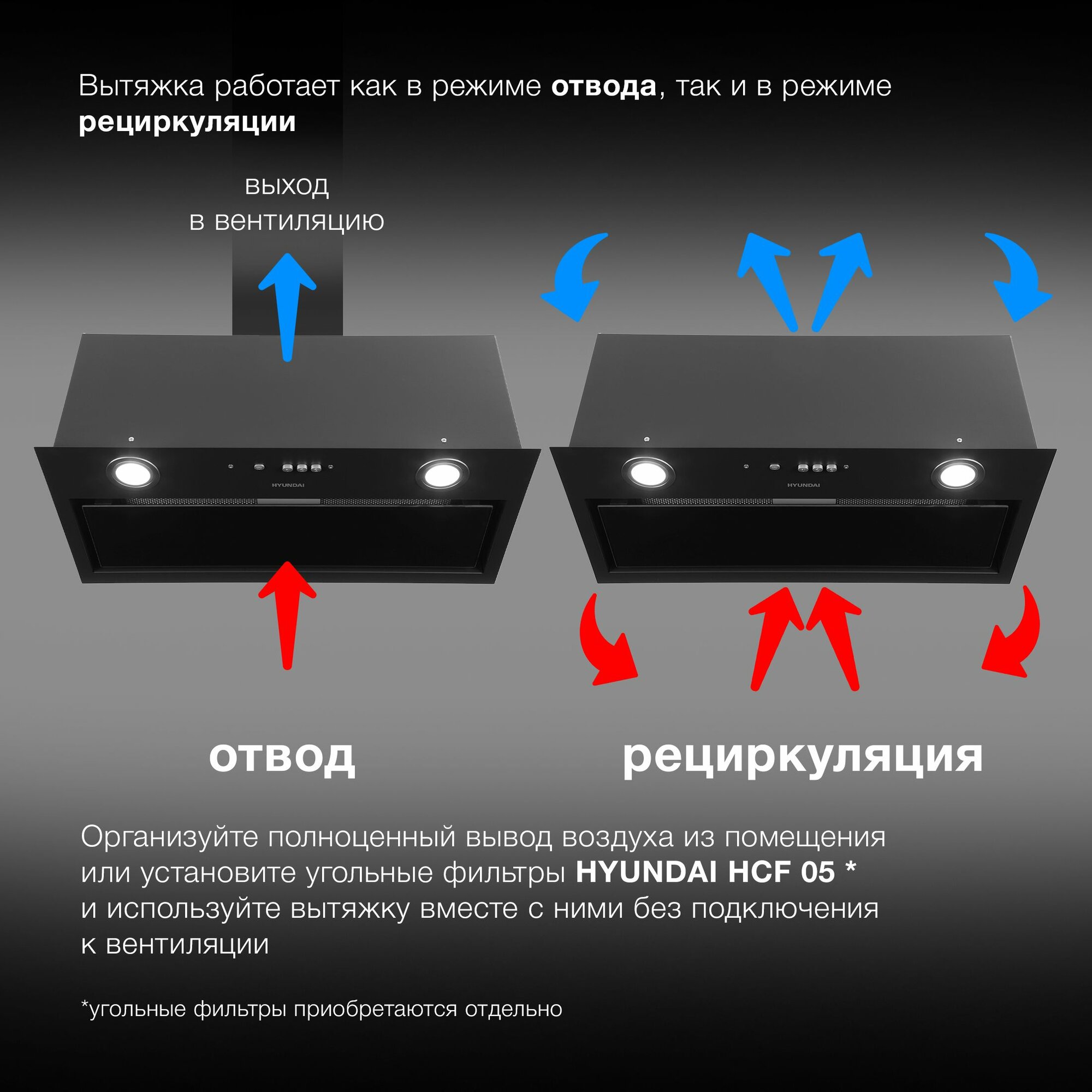 Вытяжка встраиваемая Hyundai HBB 6036 BG черный интересное: