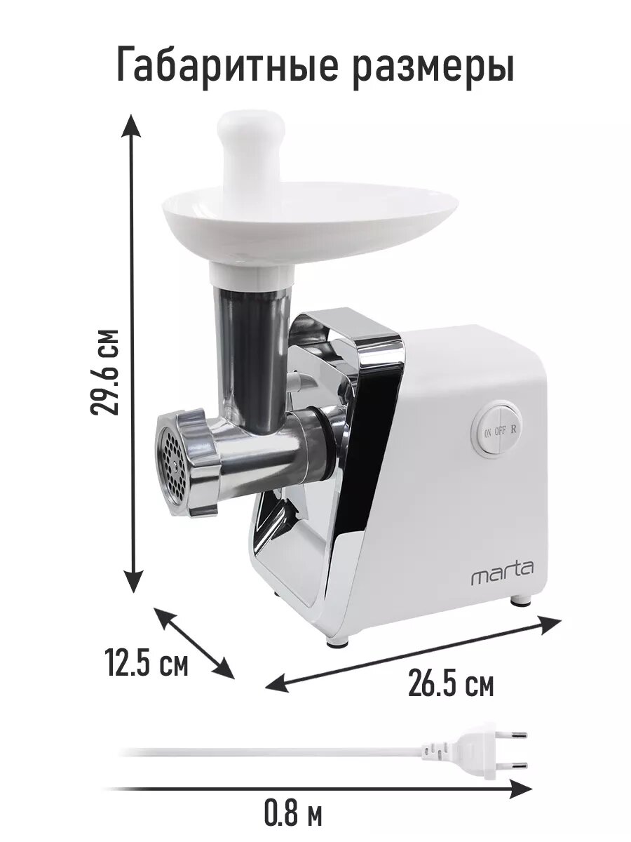 Мясорубка MARTA MT-MG2028D белый/хром интересное: