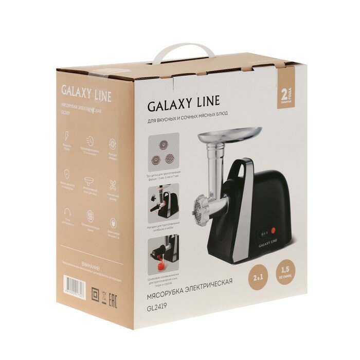 Купить Мясорубка GALAXY LINE GL2419, шнековая, пластик, 1600Вт, 3 вида дисков, защита от перегрузки