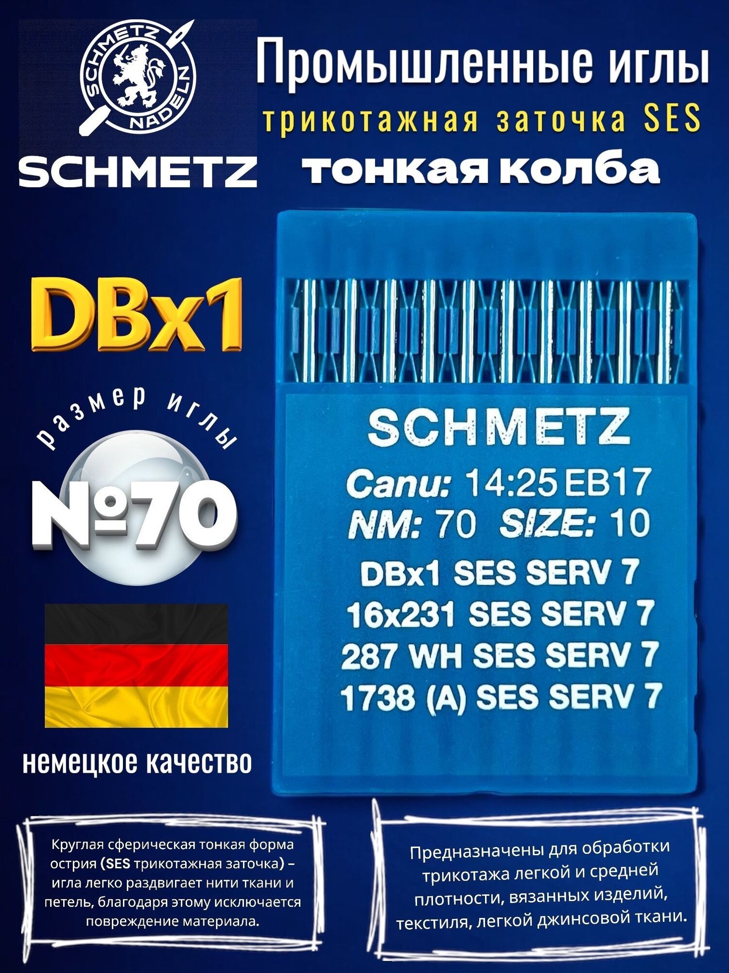 Купить Иглы промышленные Schmetz DBx1 №70 (FFG/SES) трикотажные / тонкая колба