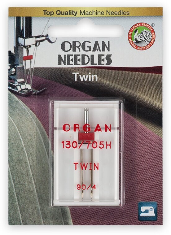 Игла Organ Twin 90/4, двойная, для бытовых швейных машин.