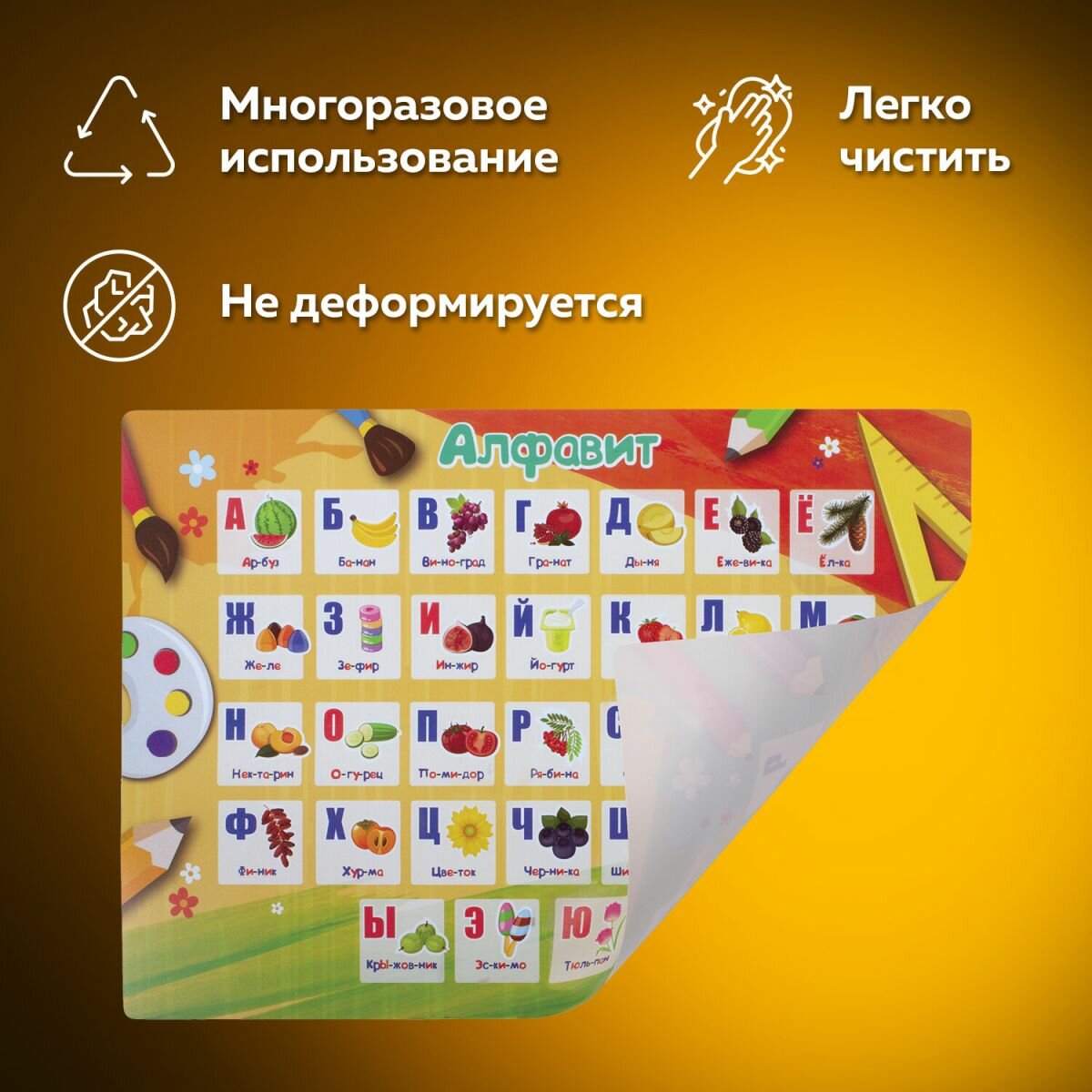 Настольное покрытие пифагор, А3+, пластик, 46x33 см, «Alphabet», 270404 интересное: