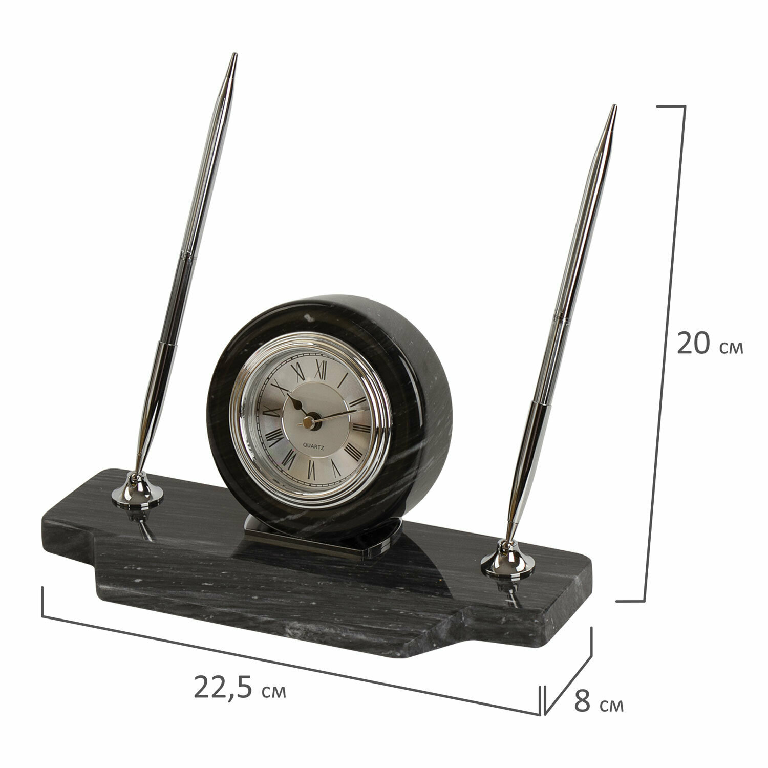 Набор GALANT настольный из мрамора, 8 предметов, черный мрамор, двойной лоток, часы, 231192
