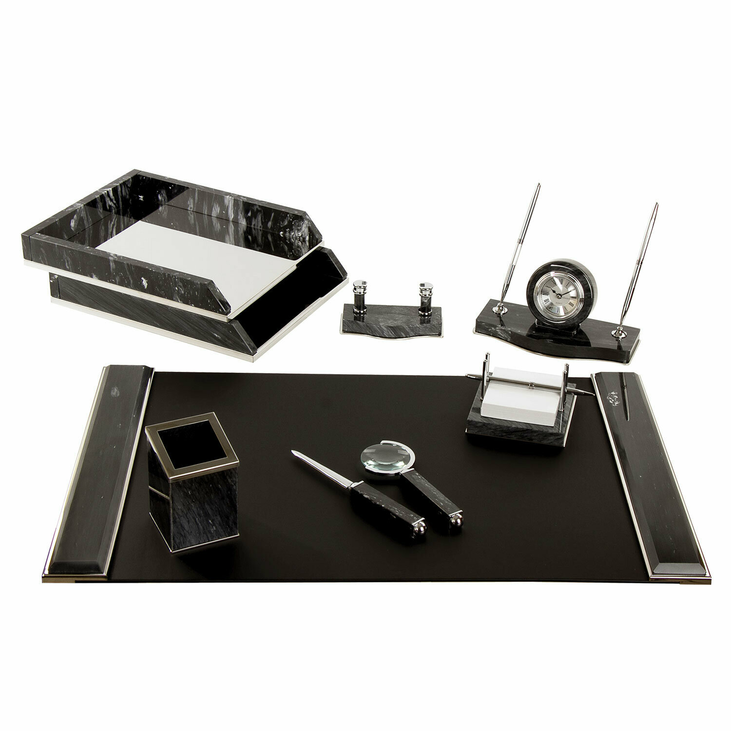 Набор настольный GALANT из мрамора, 8 предметов, черный мрамор/серебристые металлические детали, 231192