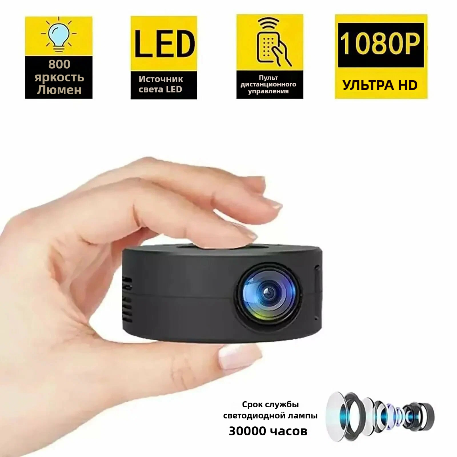 Купить Портативный мини проектор для фильмов Ultra HD домашняя техника, белый