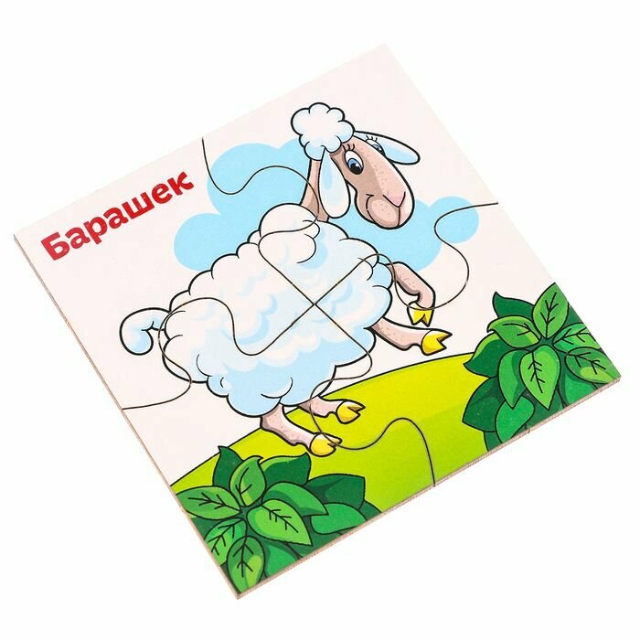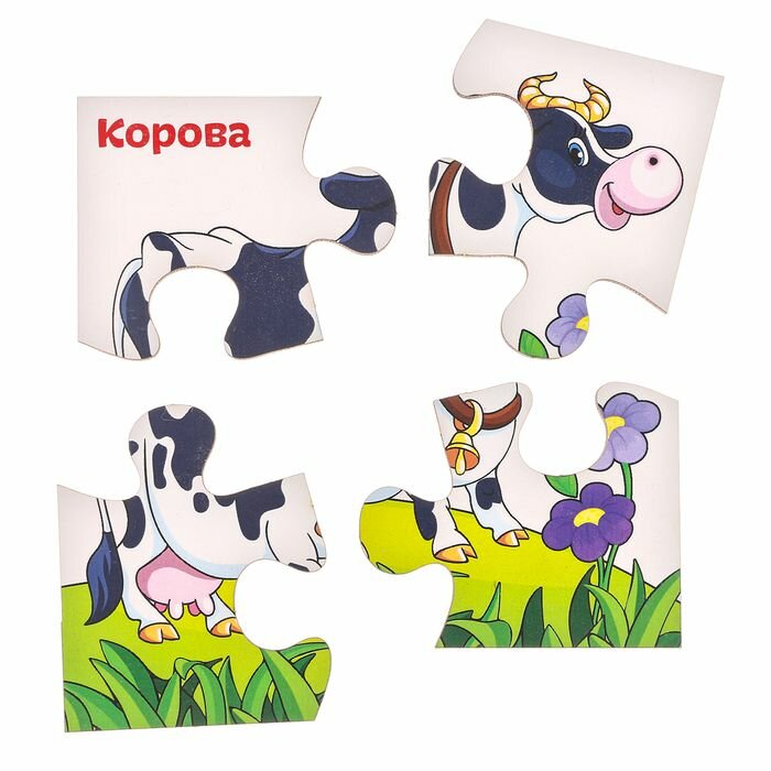 Купить Развивающие пазлы из дерева Домашние животные , 4 пазла, 16 деталей .
