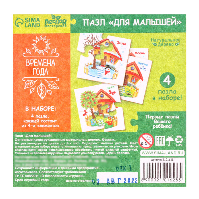Развивающие пазлы из дерева "Времена года", 4 пазла, 16 деталей интересное: