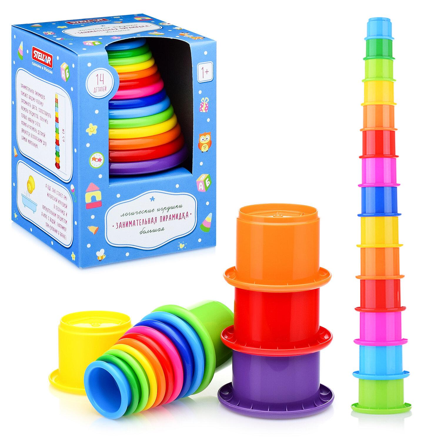 Занимательная пирамидка большая, 65 см,14 элементов, от 1 года интересное: