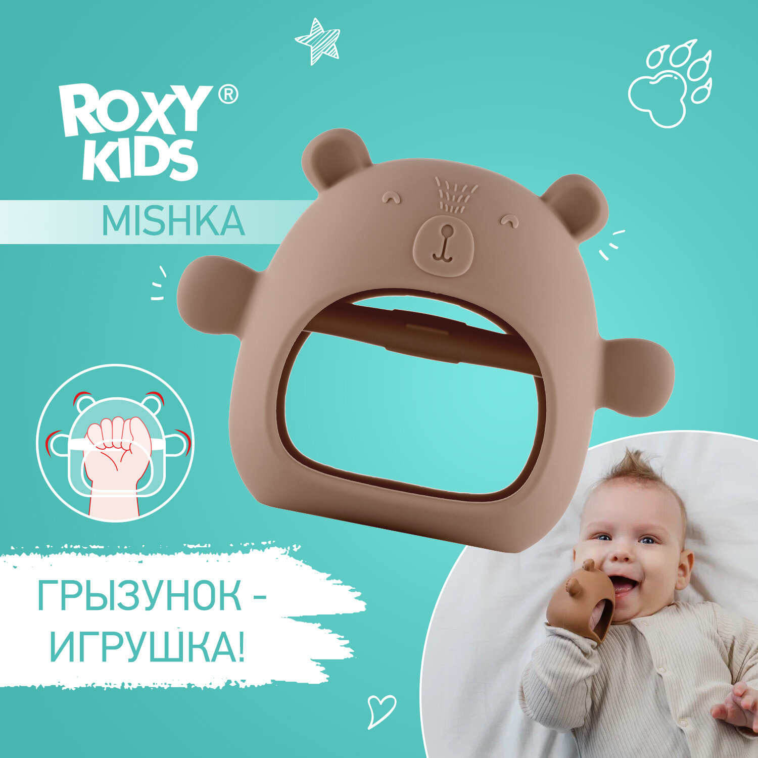 Прорезыватель для зубов ROXY-KIDS на руку Мишка цвет карамельный интересное: