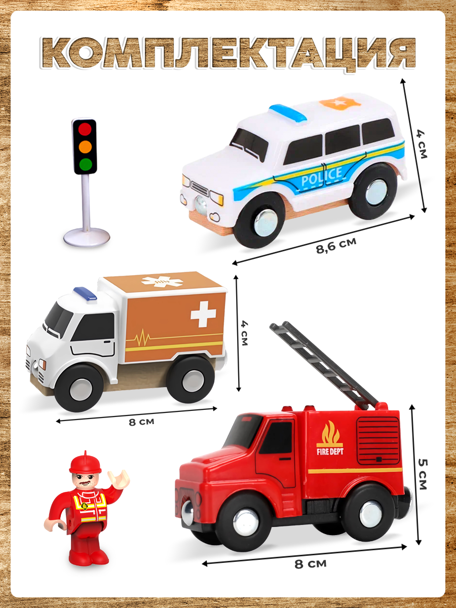 Пожарный набор с электропоездом для деревянной железной дороги