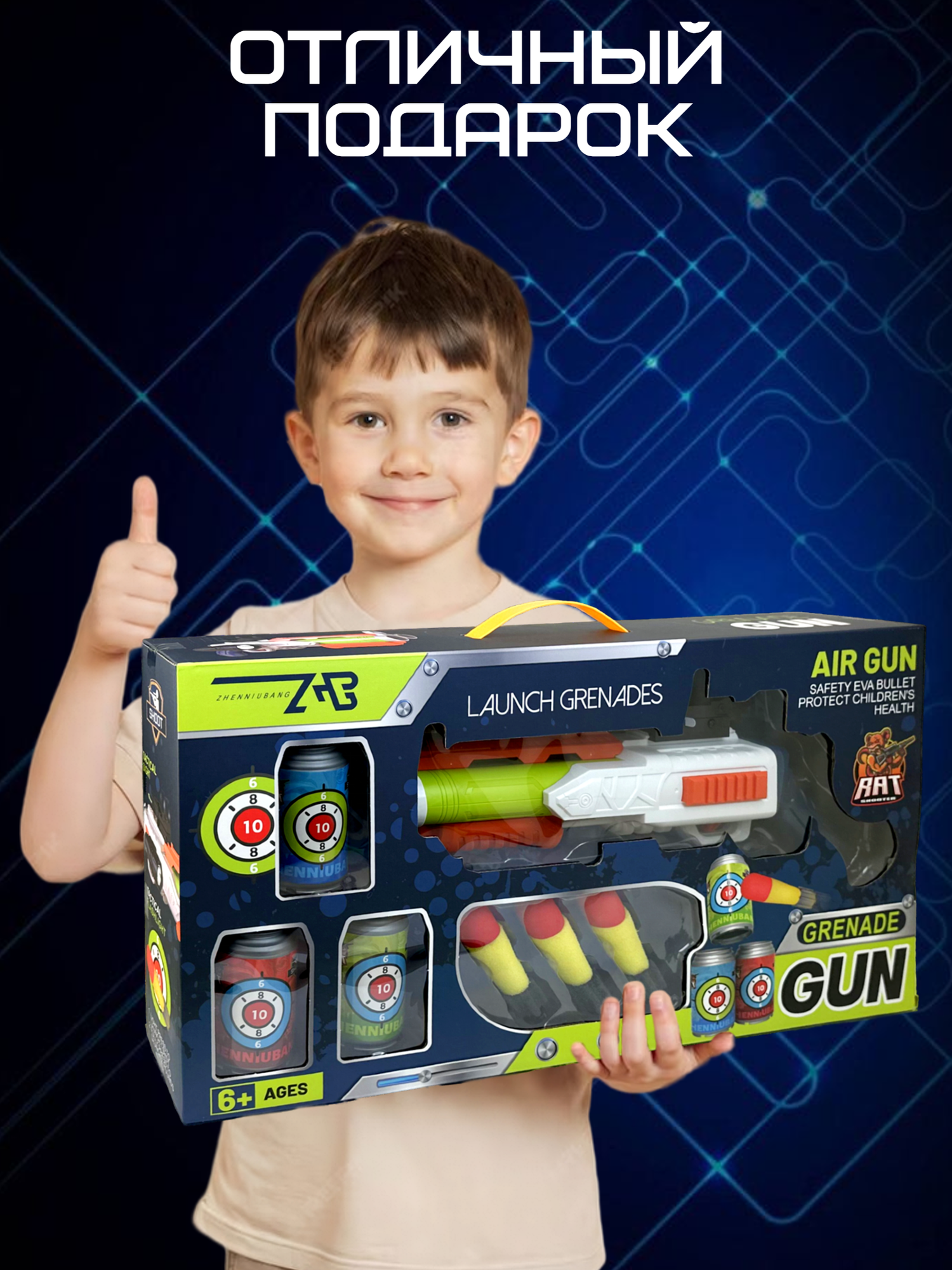 Бластер-пистолет Grenade Gun, автомат стреляет мягкими ракетами, 38 см, детское оружие с мишенями