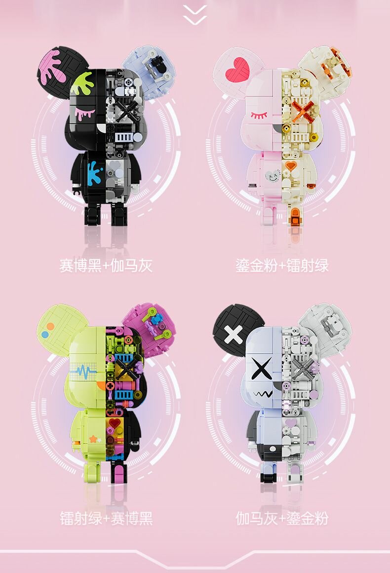Конструктор JAKI "Кибер мишка" Bearbrick, 3D, магнитный, розовый, 546 деталей