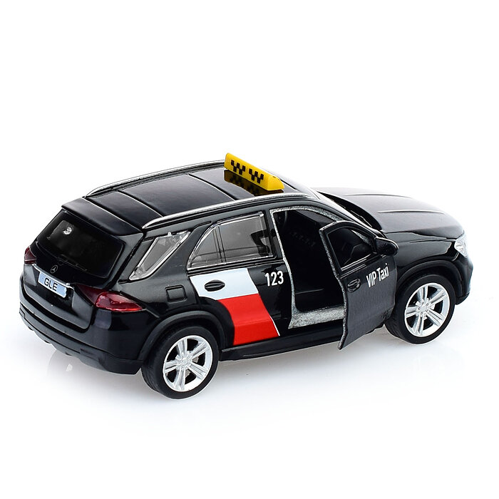 Машинка детская Mercedes-Benz GLE VIP Такси 12 см, Технопарк, черная, открываются двери и багажник, металл