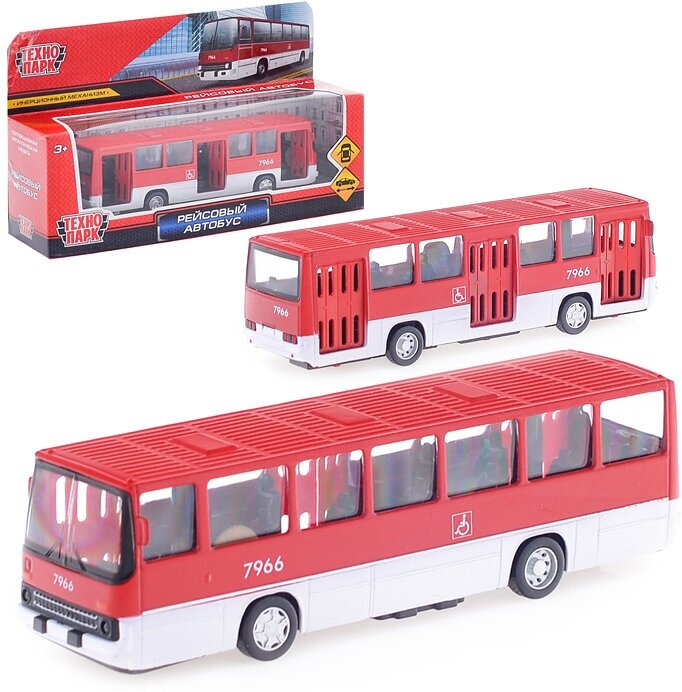 Купить Модель Инерционная Технопарк Рейсовый автобус (17см, металл, открываются двери, красный, в коробке) IKABUS-17-RDWH