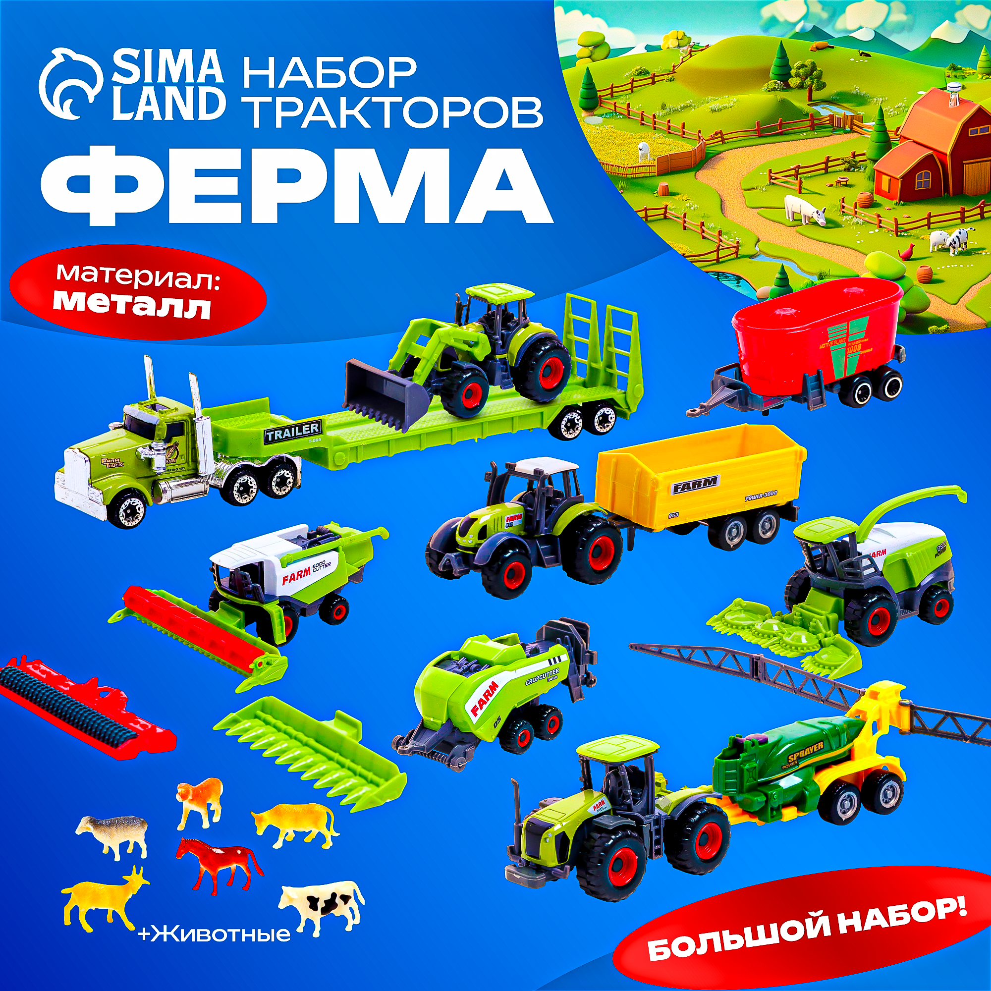 Набор металлических тракторов "Ферма", с животными, МИКС, Сима-ленд интересное: