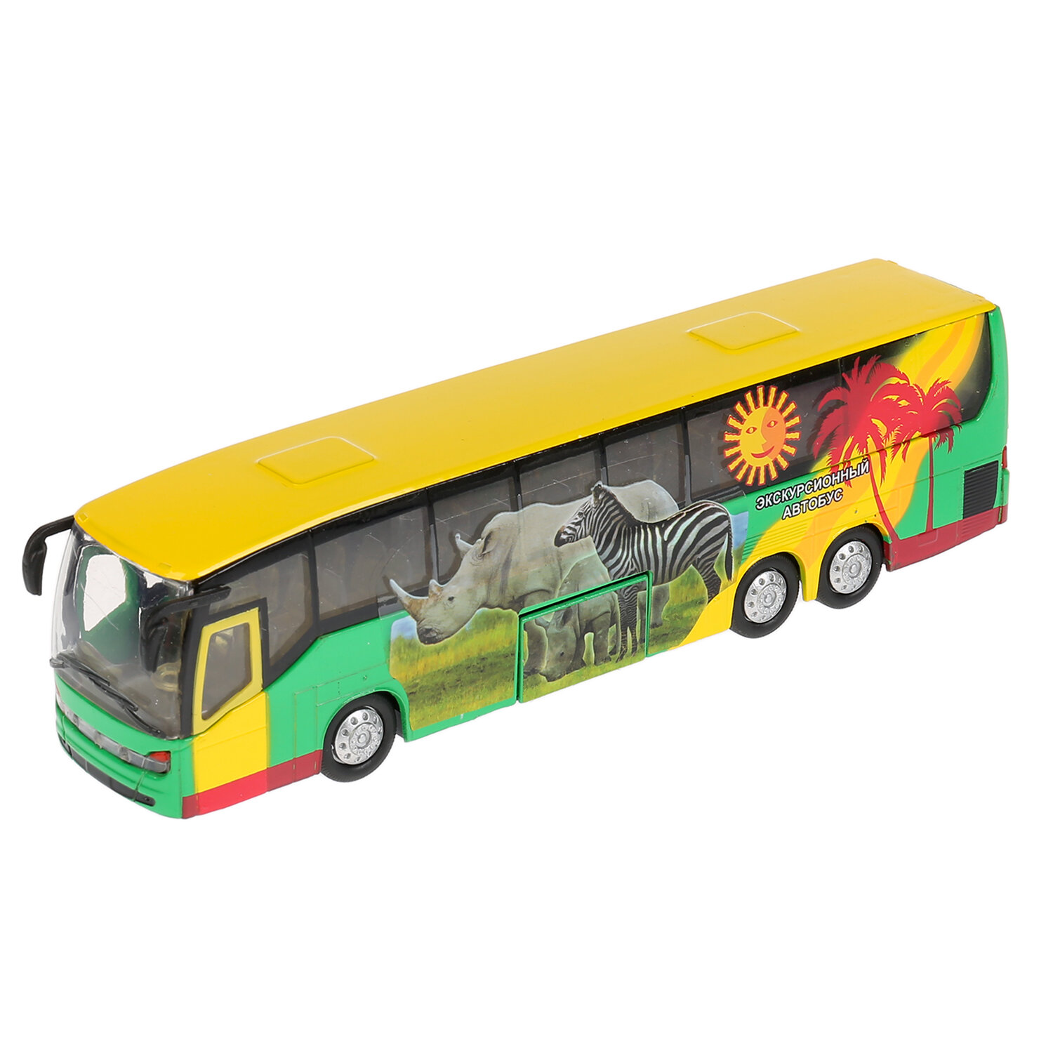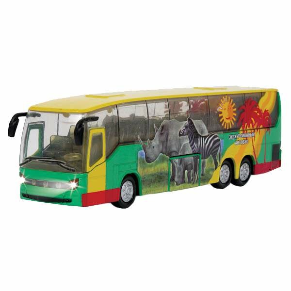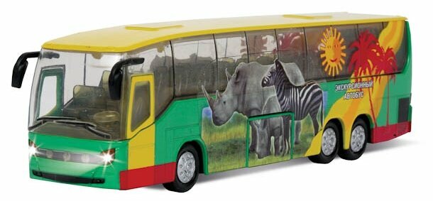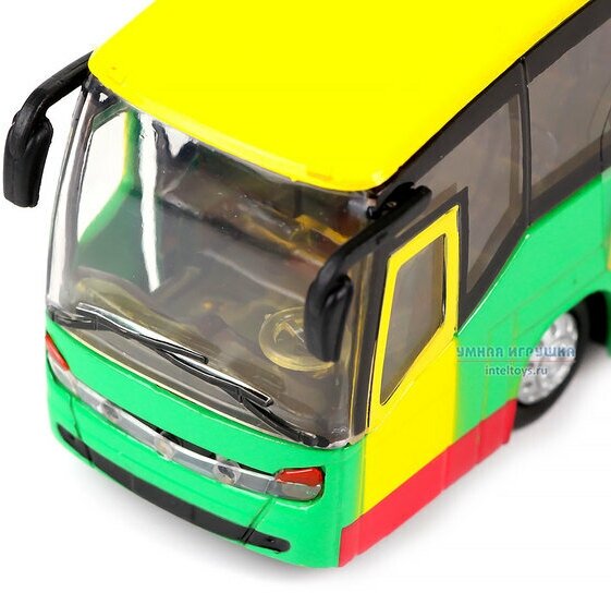 Машинка детская Автобус Расписной Тропический 18.5 см, Технопарк, металлический корпус, свет и звук