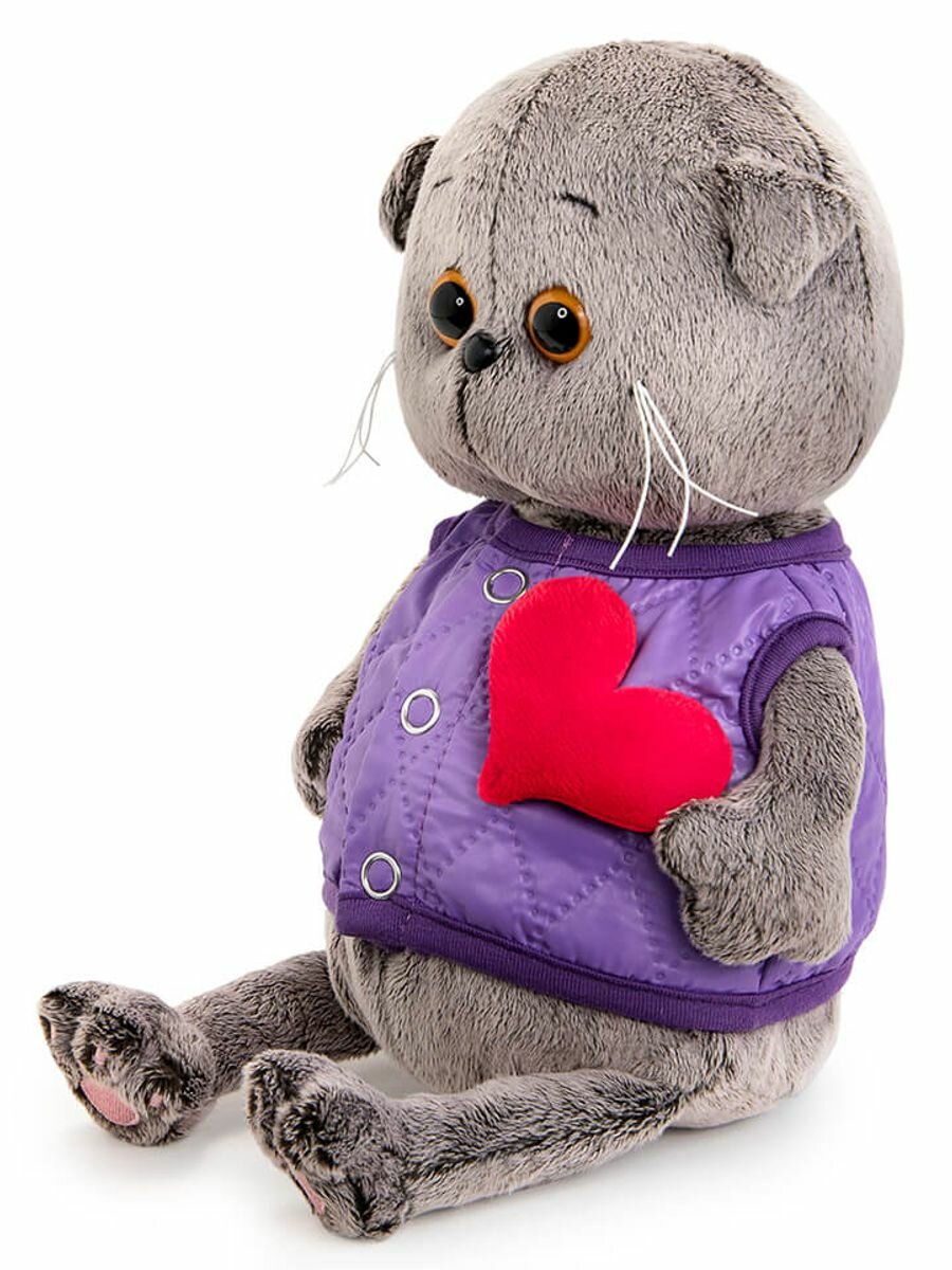 Кот Басик BABY 20 см в дутом жилете с сердечком