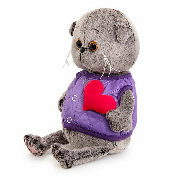 Кот Басик BABY 20 см в дутом жилете с сердечком