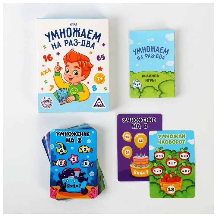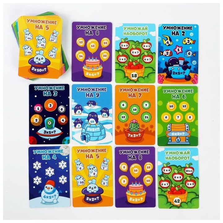 | Комплектация | 50 двухсторонних карточек. Листовка с таблицей умножения. Правила игры. |