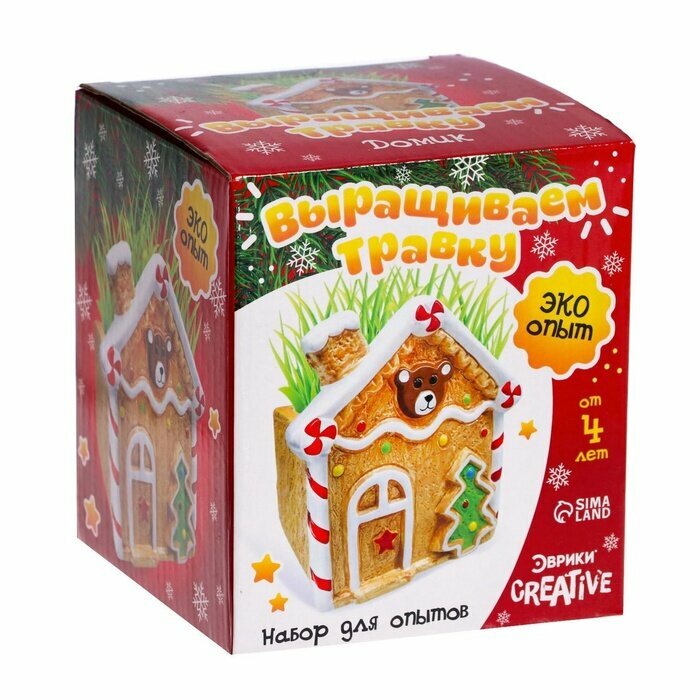 Набор для опытов выращиваем травку "Домик" с семенами, Эврики