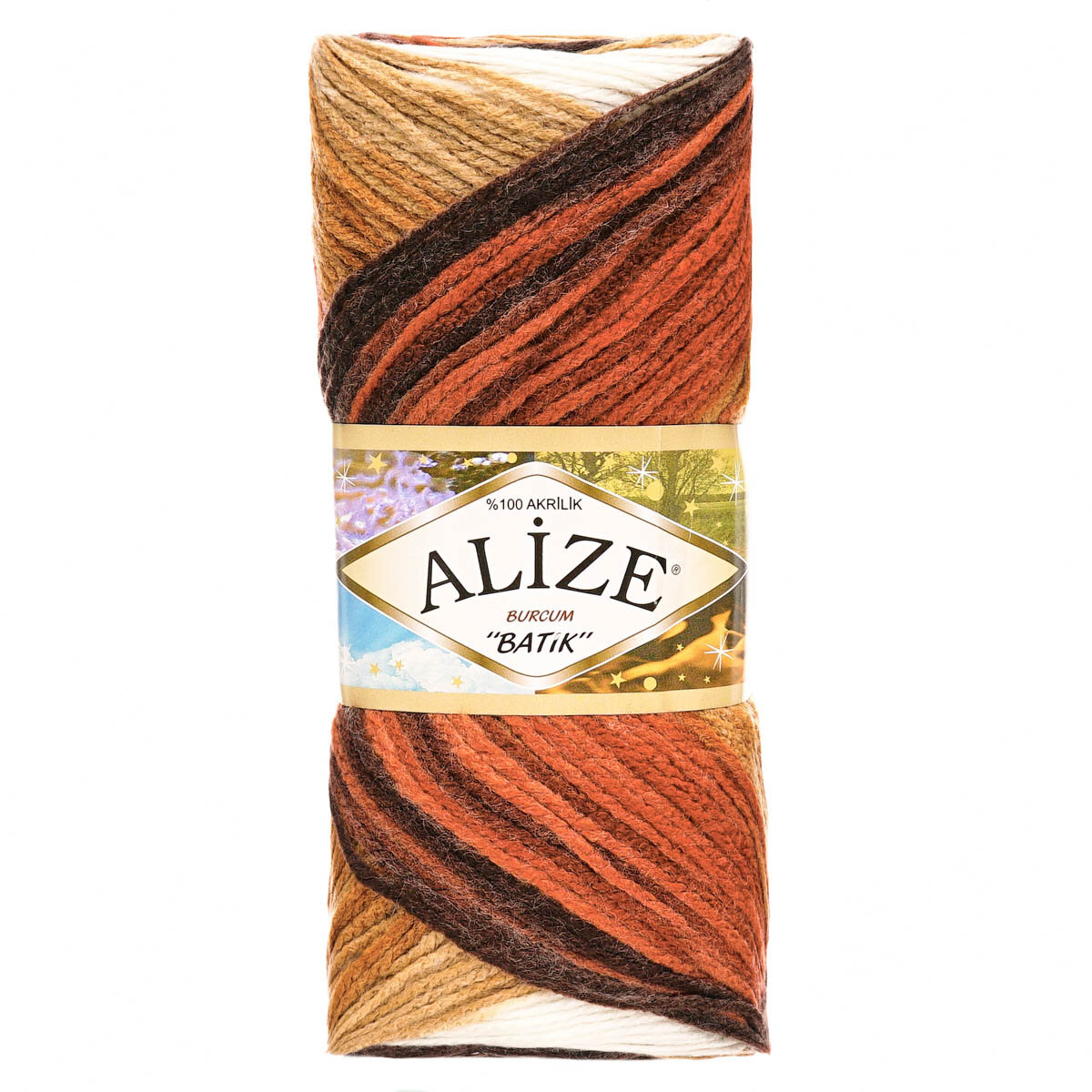 Пряжа Alize Burcum Batik бежево-коричнево-желтый (3379), 100%акрил, 210м, 100г, 5шт