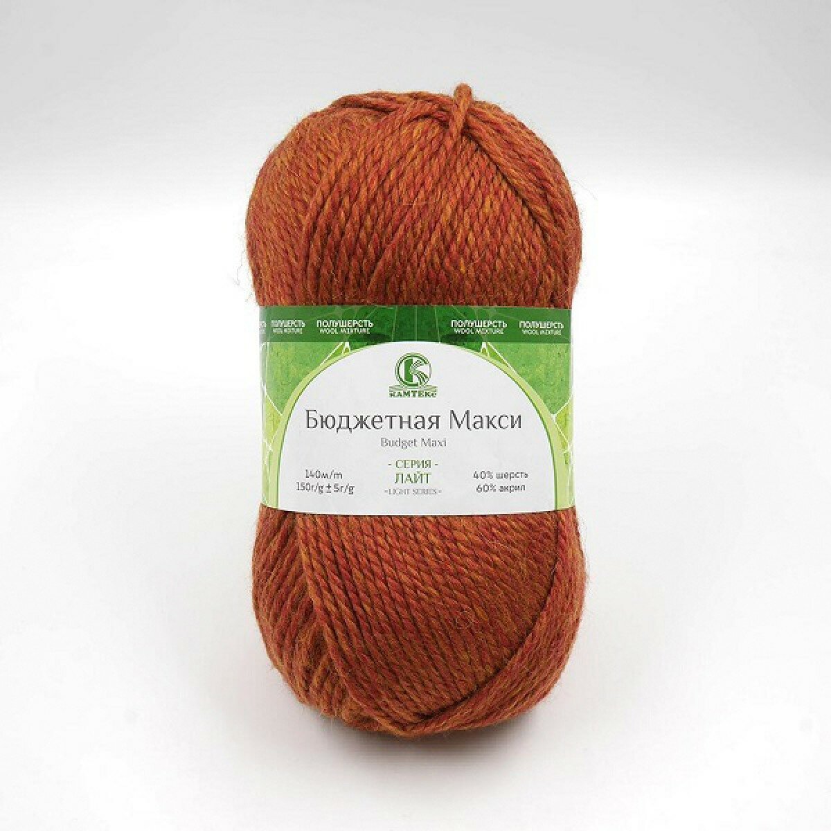 Пряжа для вязания Камтекс 'Бюджетная макси' 150г, 140м (шерсть 40%, акрил 60%) (135 терракотовый меланж), 4 мотка
