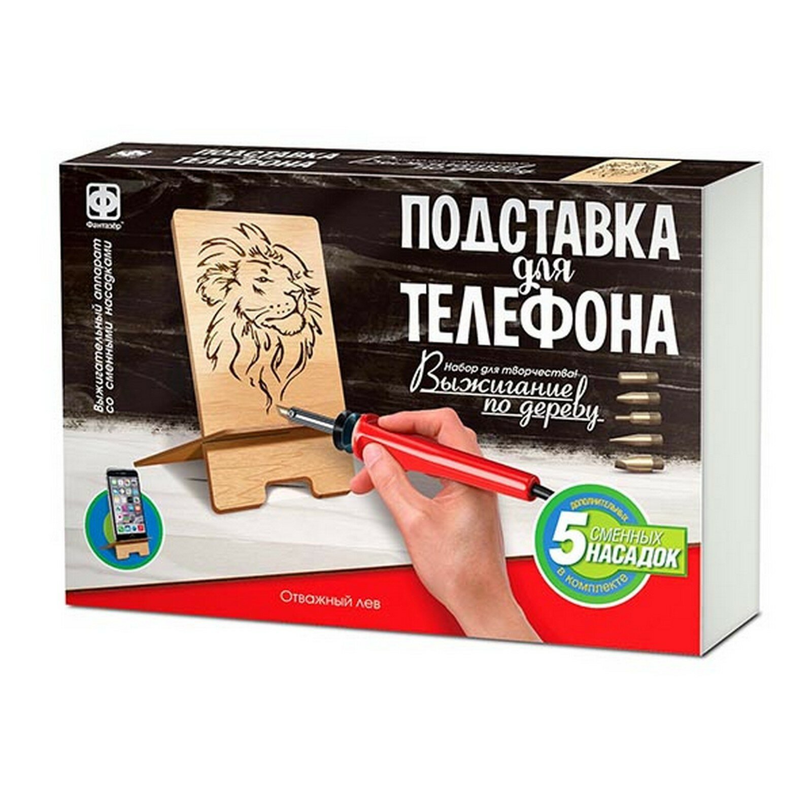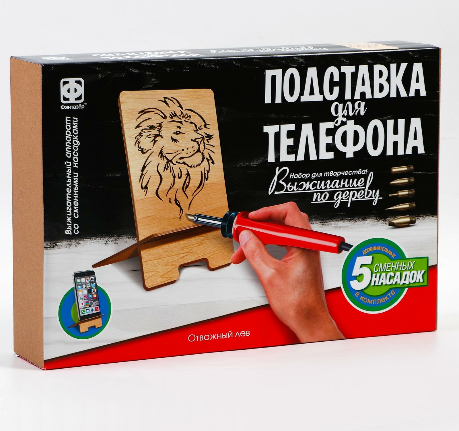 Набор для выжигания Фантазёр Подставка для телефона Отважный лев интересное:
